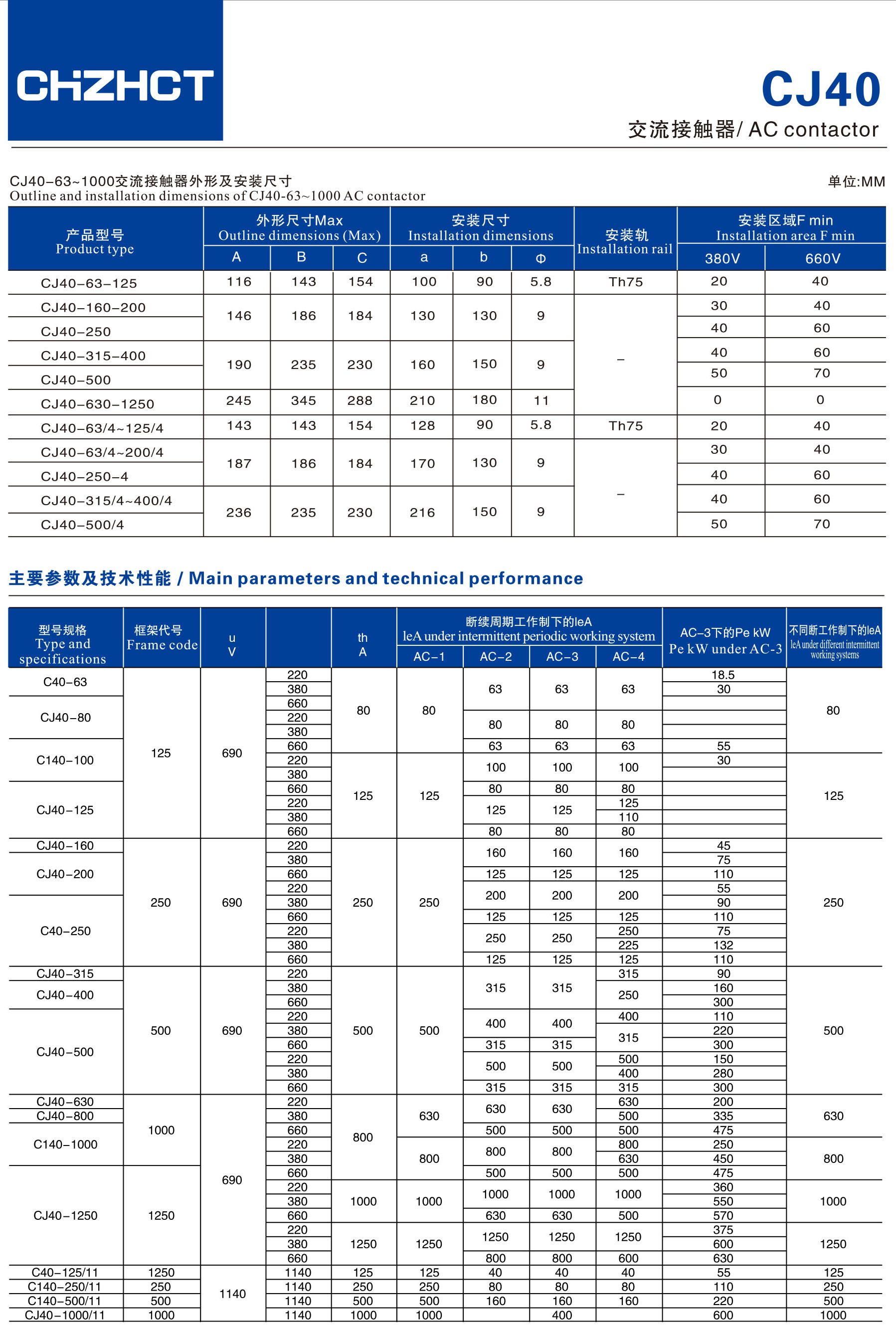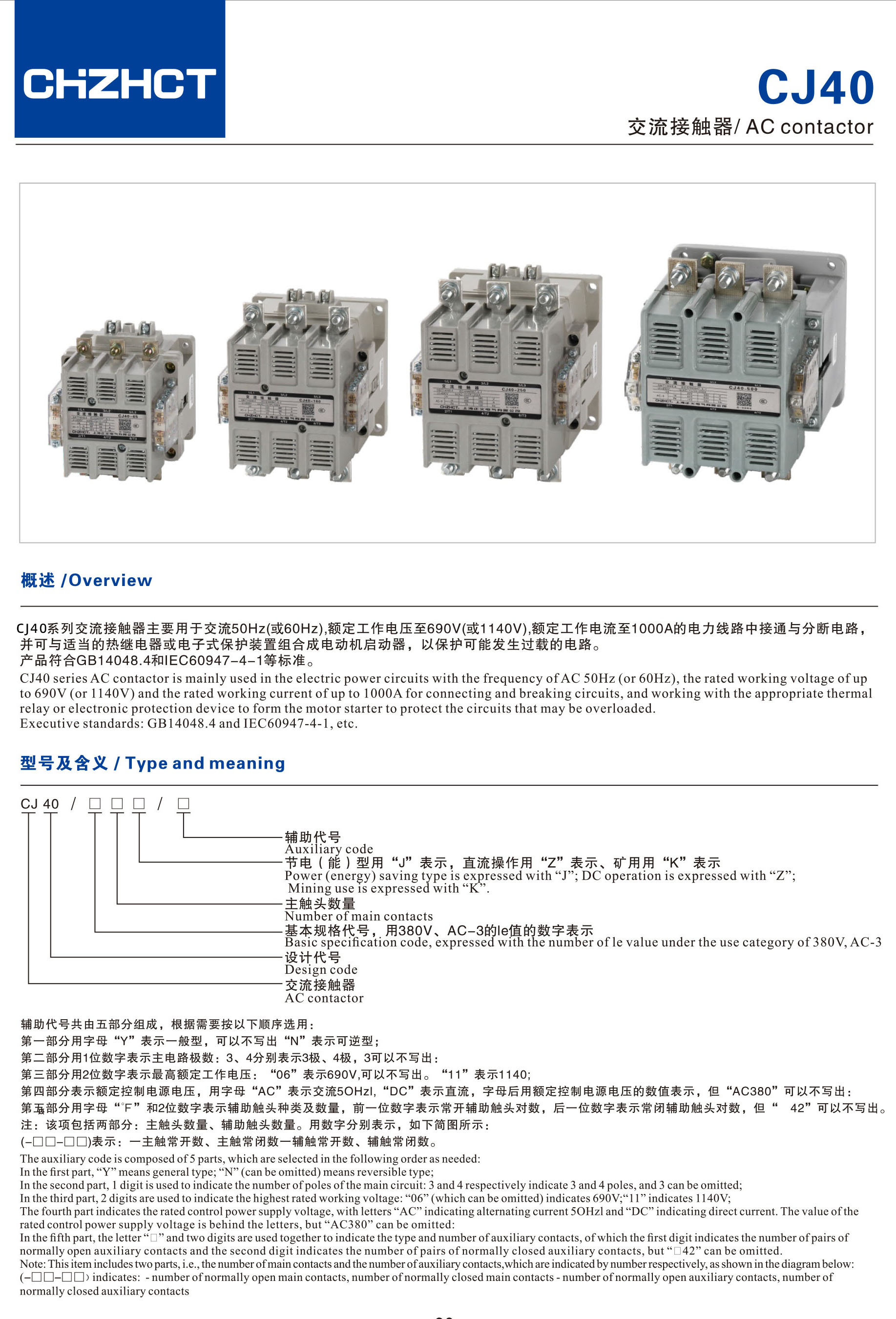 CJ40交流接触器_传统交流接触器_接触器_工业控制与保护_产品中心_PA集团电气股份有限公司