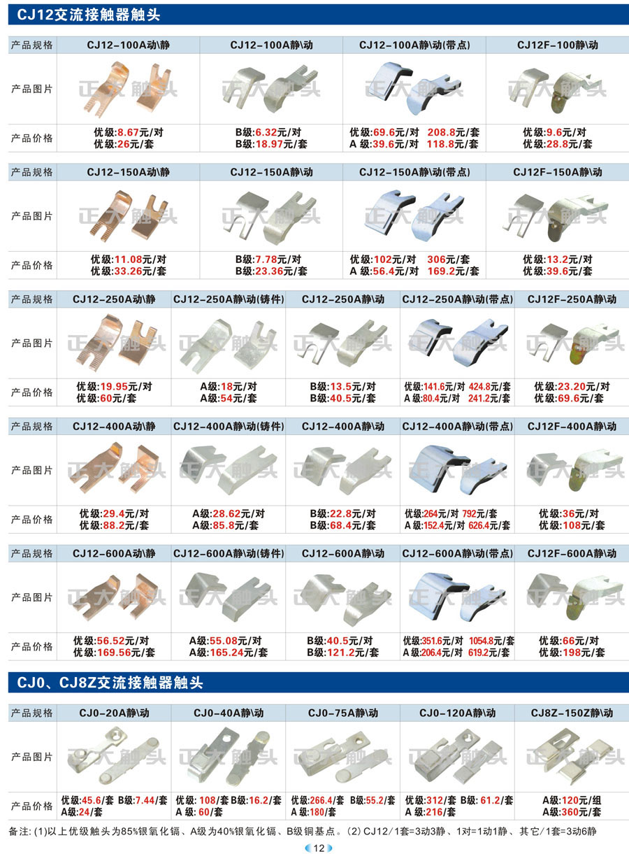 CJ12、CJ0、CJ8Z交流接触器触头