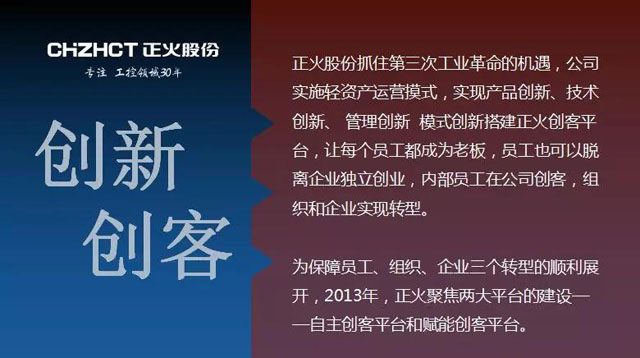 pa集团股份抓住第三次工业革命的机遇,公司实施轻资产运营摸式,实现产品创新、技术创新、 管理创新、模式创新、搭建正火创客平台,让每个员工都成为老板,员工也可以脱离企业独立创业,内部员工在公司创客,组织和企业实现转型。为保障员工、组织、企业三个转型的顺利展开,2013年,正火聚焦两大平台的建设——自主创客平台和赋能创客平台。