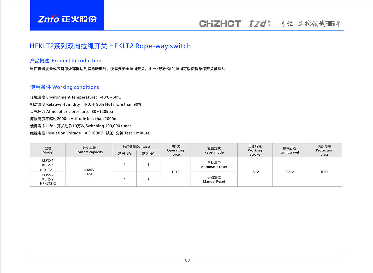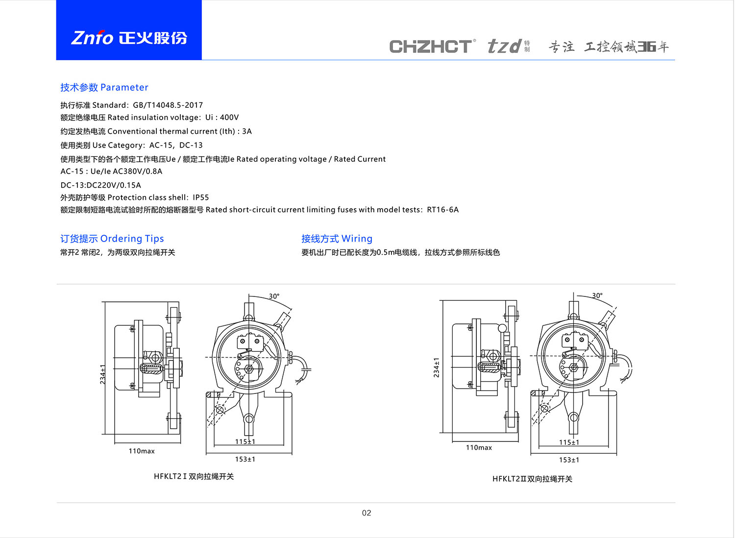 HFKLT2双向拉绳开关 产品说明书