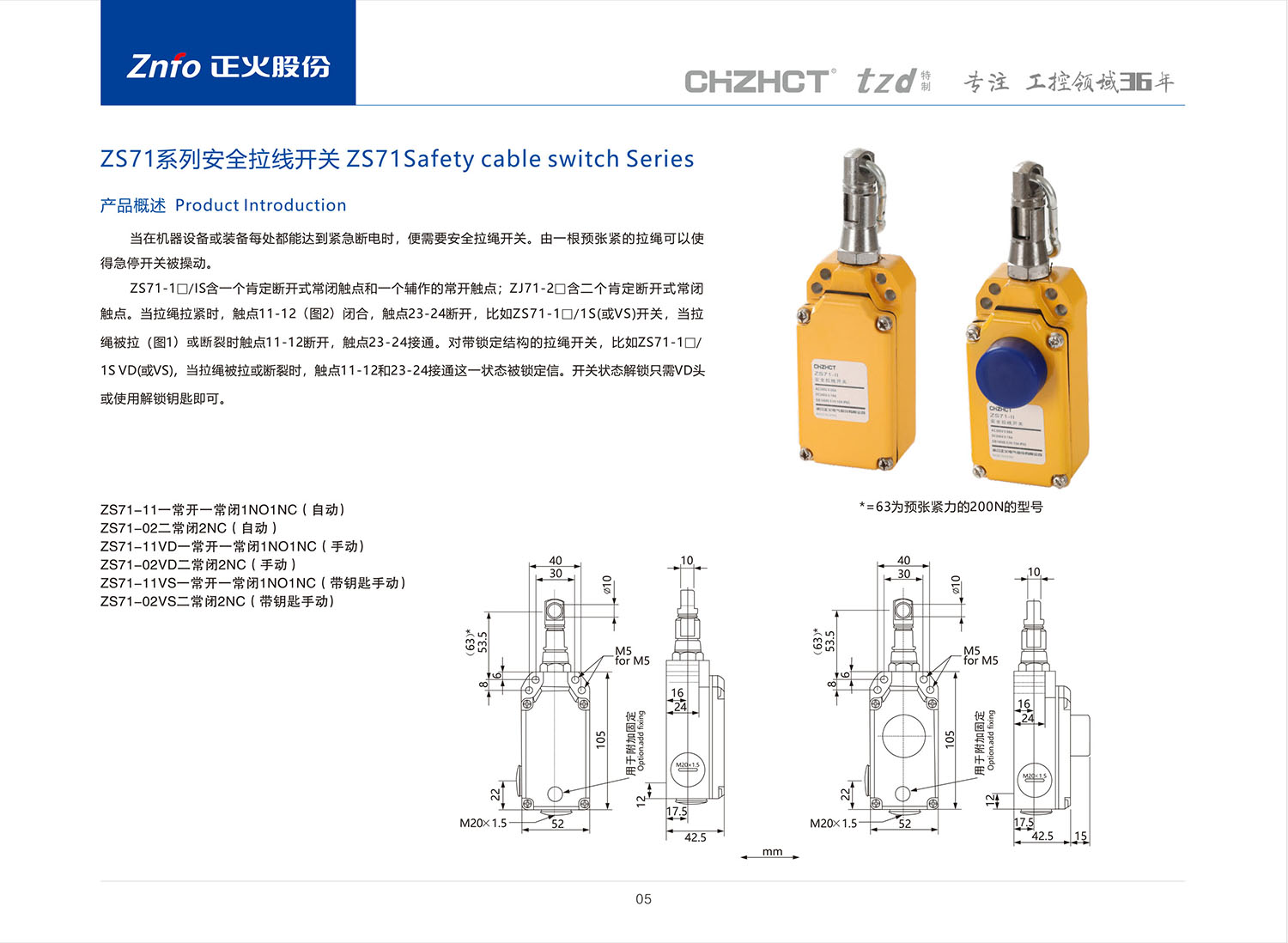 ZS71安全拉线开关产品说明书