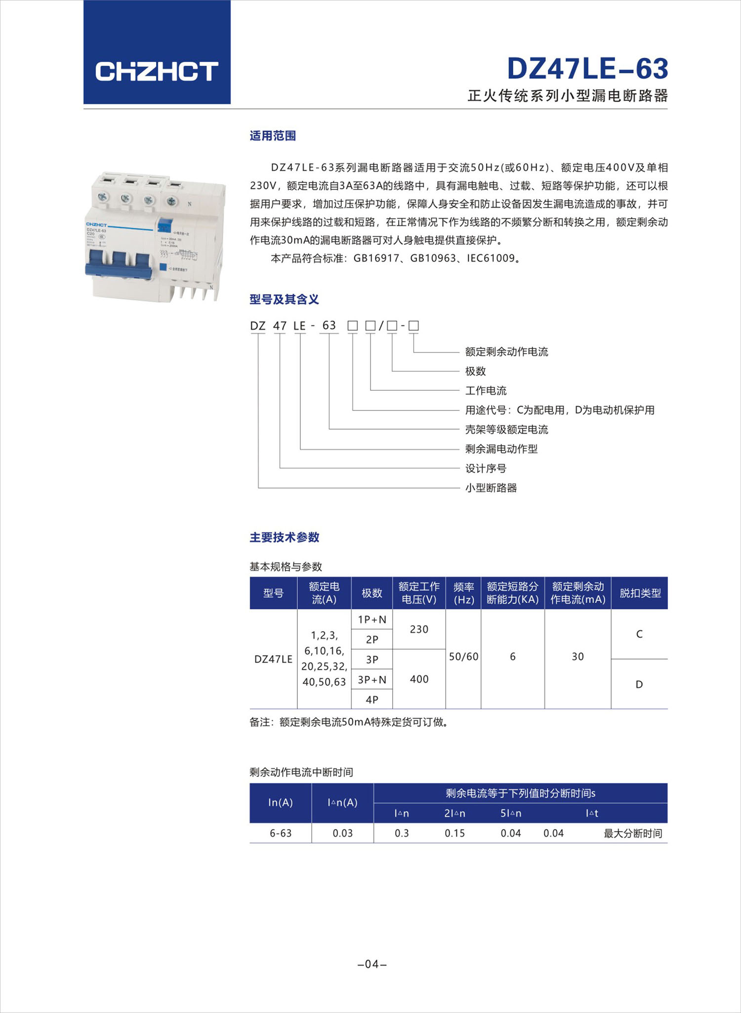 DZ47LE-63 小型漏电断路器_漏电小型断路器_终端电器_产品中心_PA集团电气股份有限公司