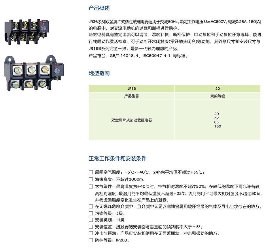 JR36系列热过载继电器产品说明书