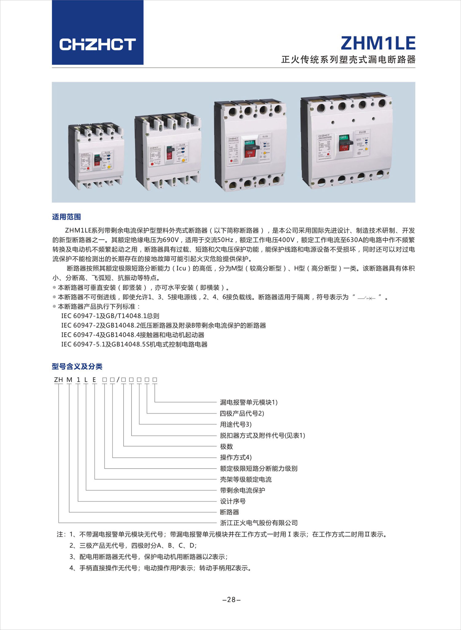 ZHM1LE 塑壳式漏电断路器产品说明书