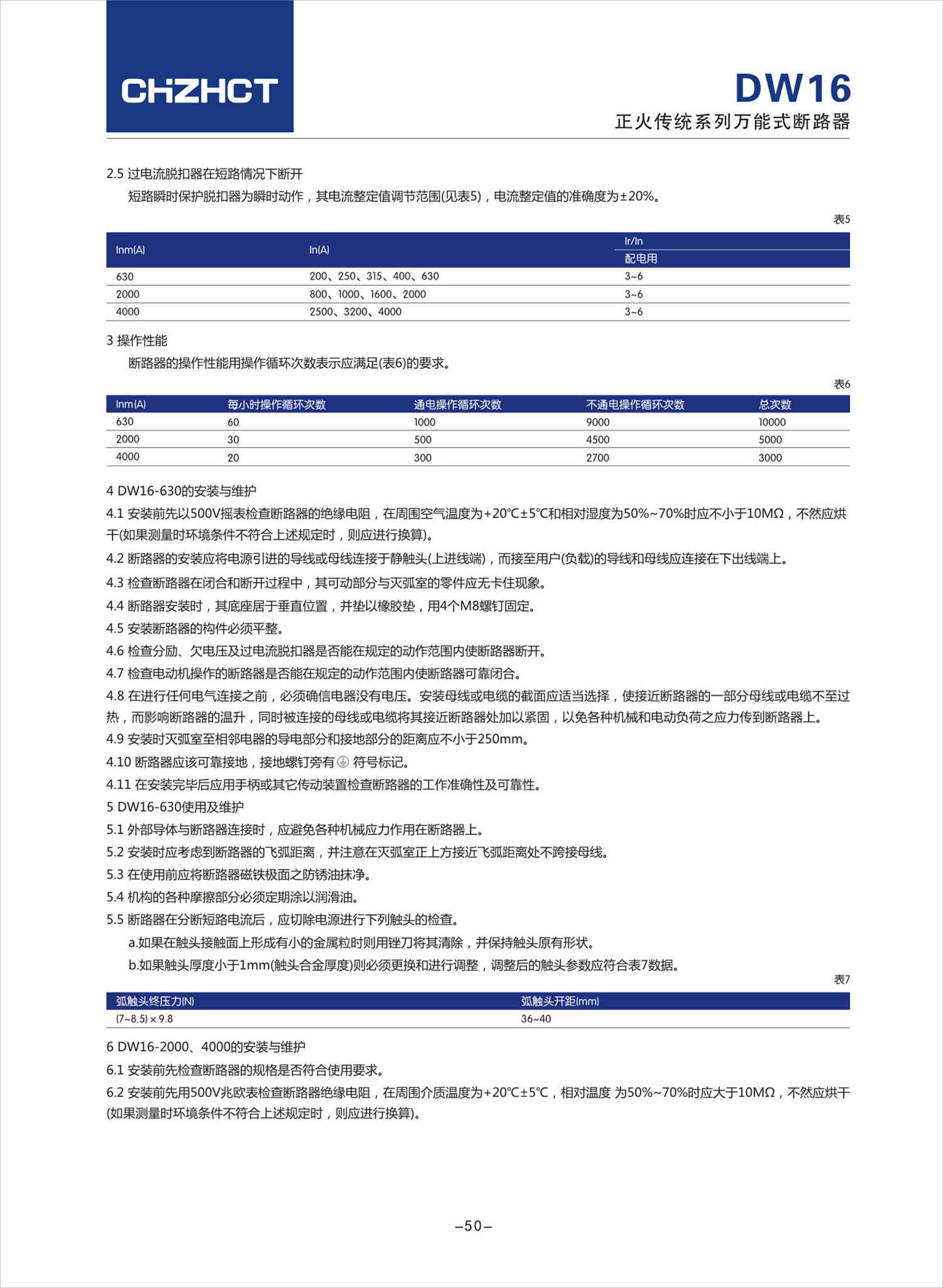 DW16 系列万能式断路器产品说明书