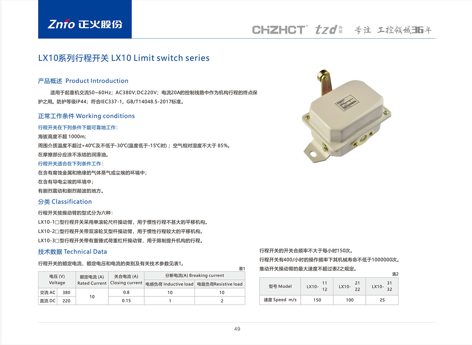 LX10系列行程开关_行程/限位开关_行程/微动/跑偏/拉绳/超速_工业控制与保护_产品中心_PA集团电气股份有限公司
