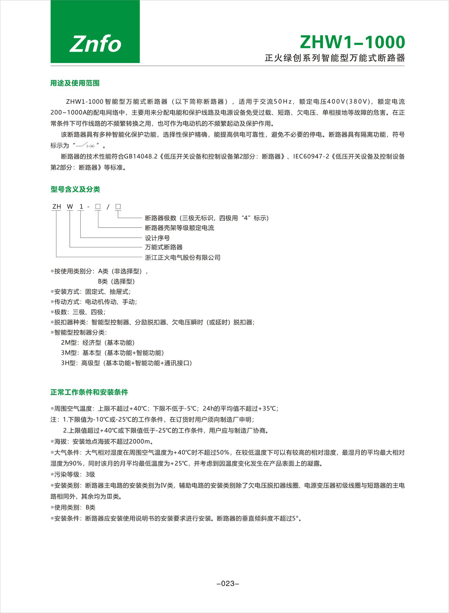 ZHW1-1000系列智能型万能式断路器产品说明书
