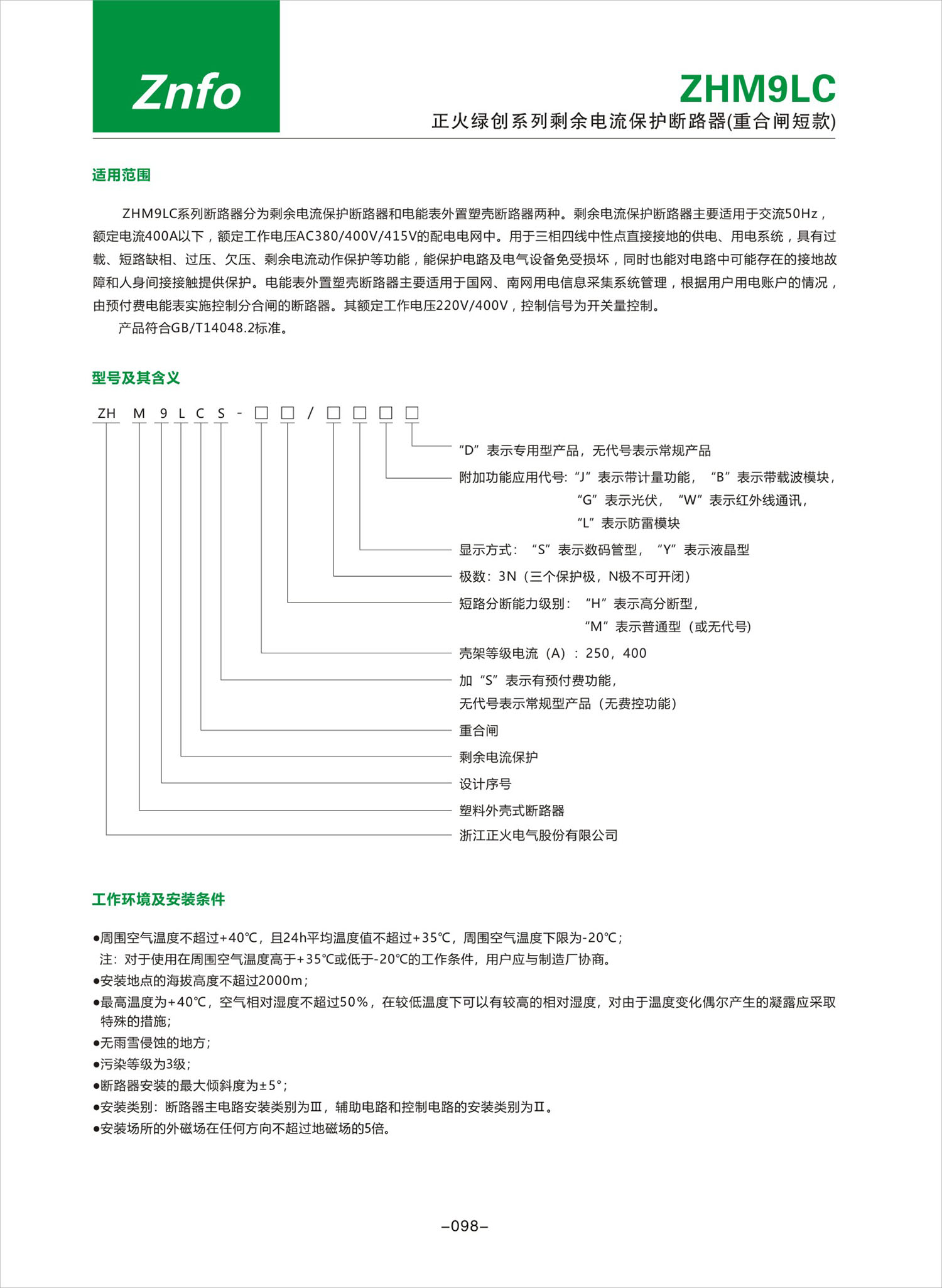ZHM9LC系列剩余电流保护断路器(重合闸短款)产品说明书